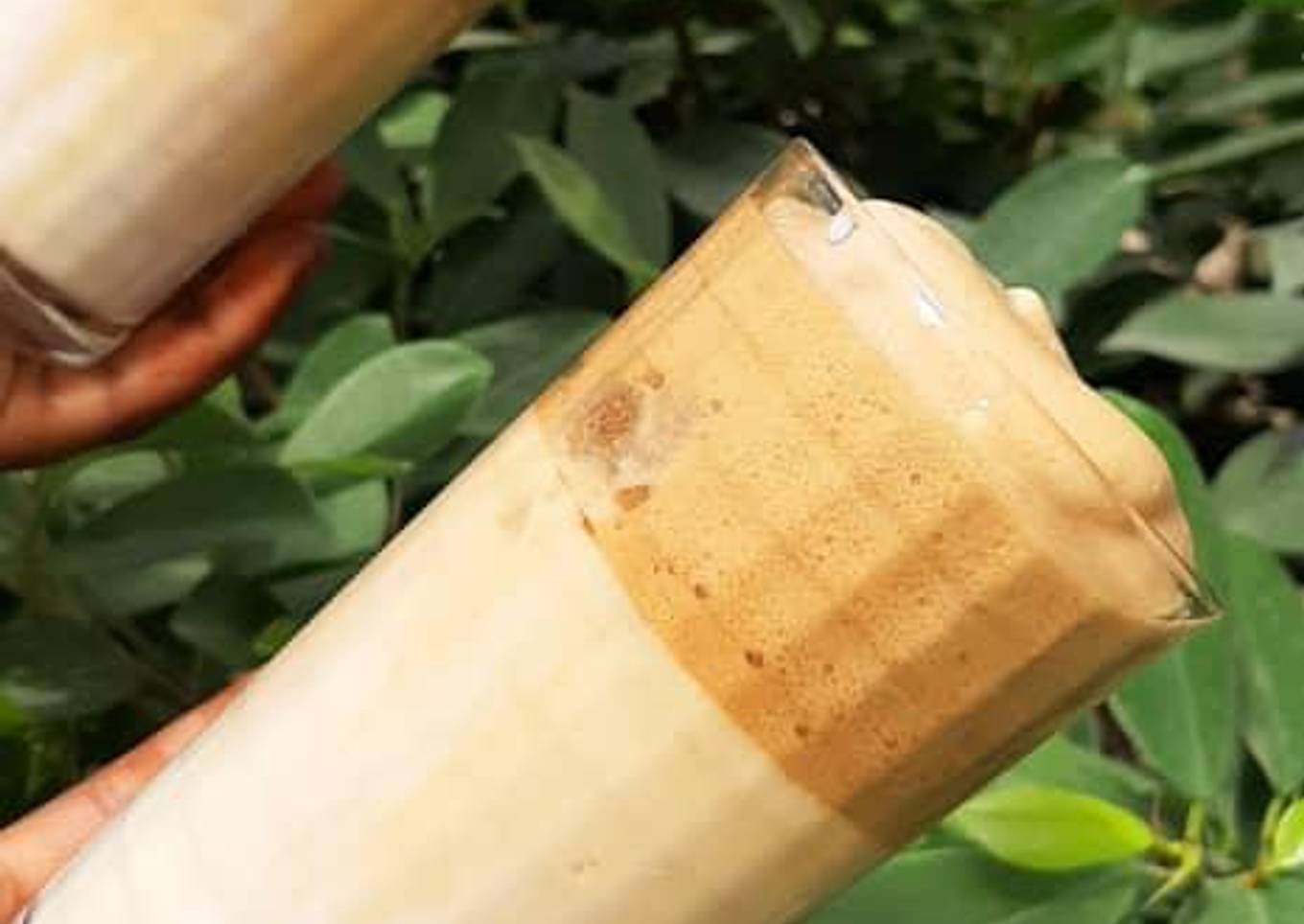 - Put in ice cubes in a tumbler add in milk den whisked coffee