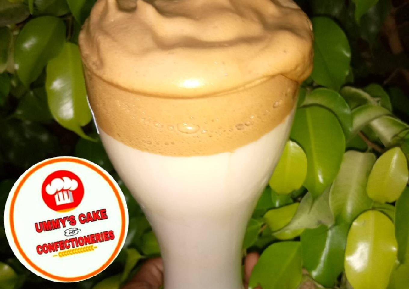 - Add in crushed ice into a glass, pour the milk inside the cup, top it with the beated coffee mixture.