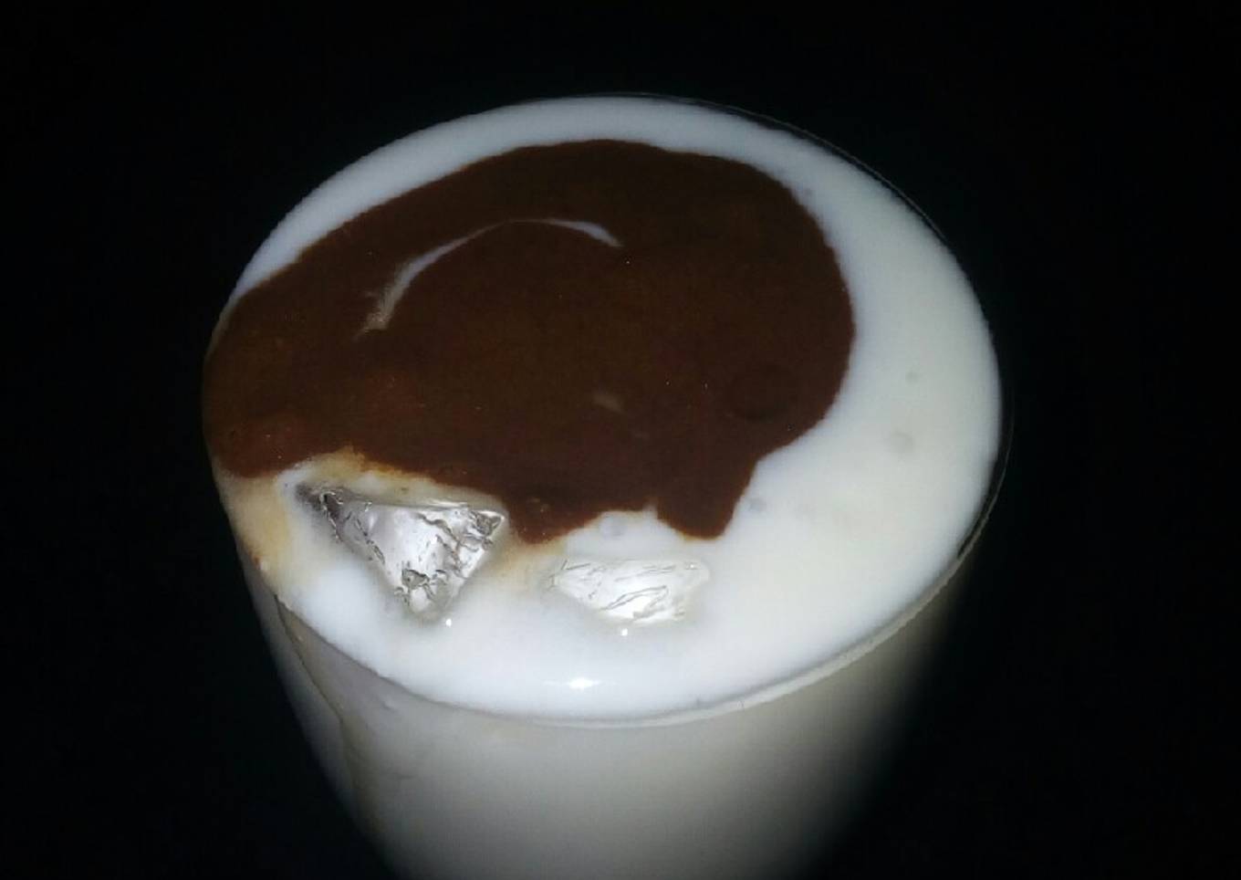 - In a glass cup add crush ice block, fresh milk and add ur creamy coffee mixture