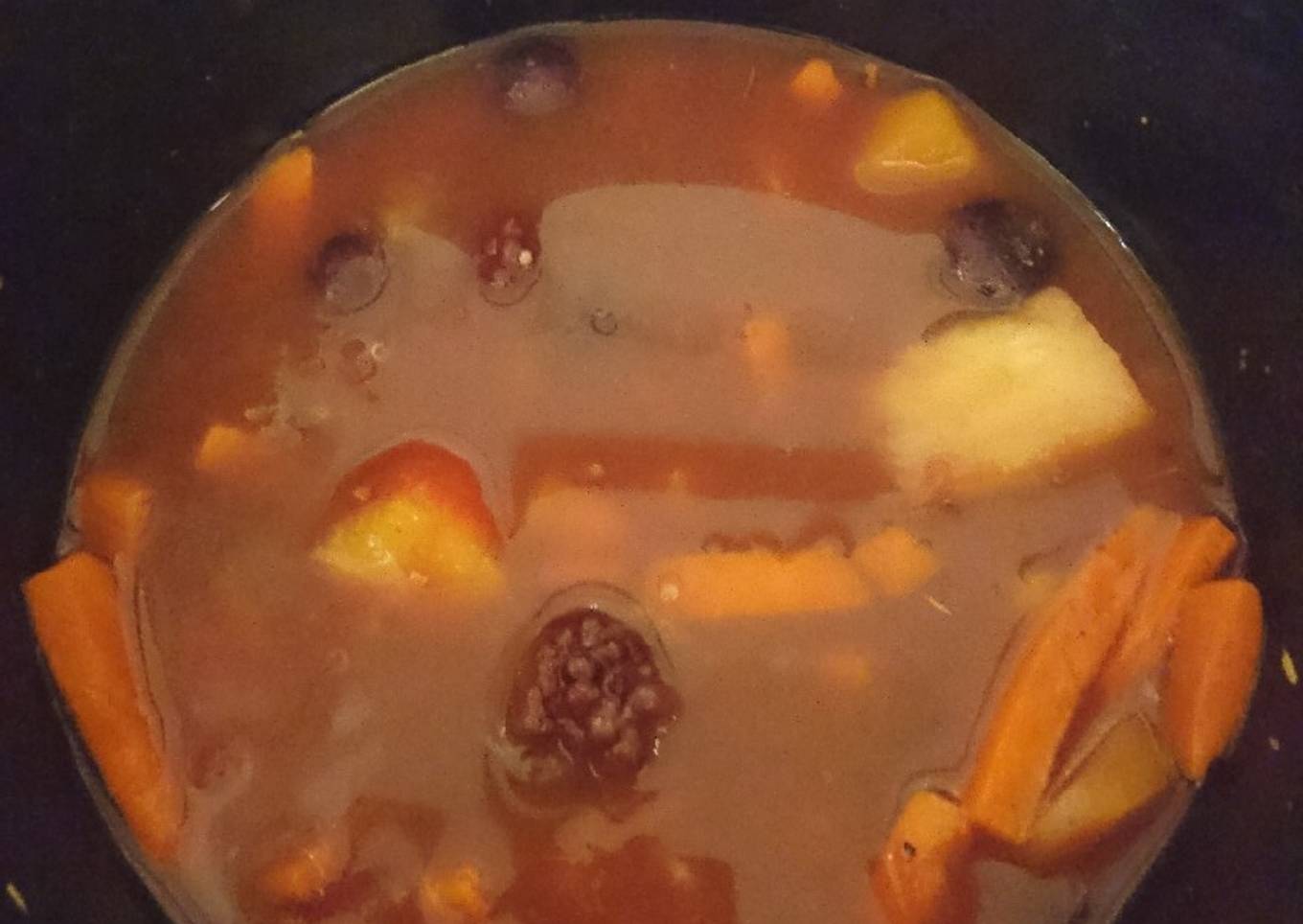 Instructions to make to make Caribbean vegan fruit, veg & grain stew