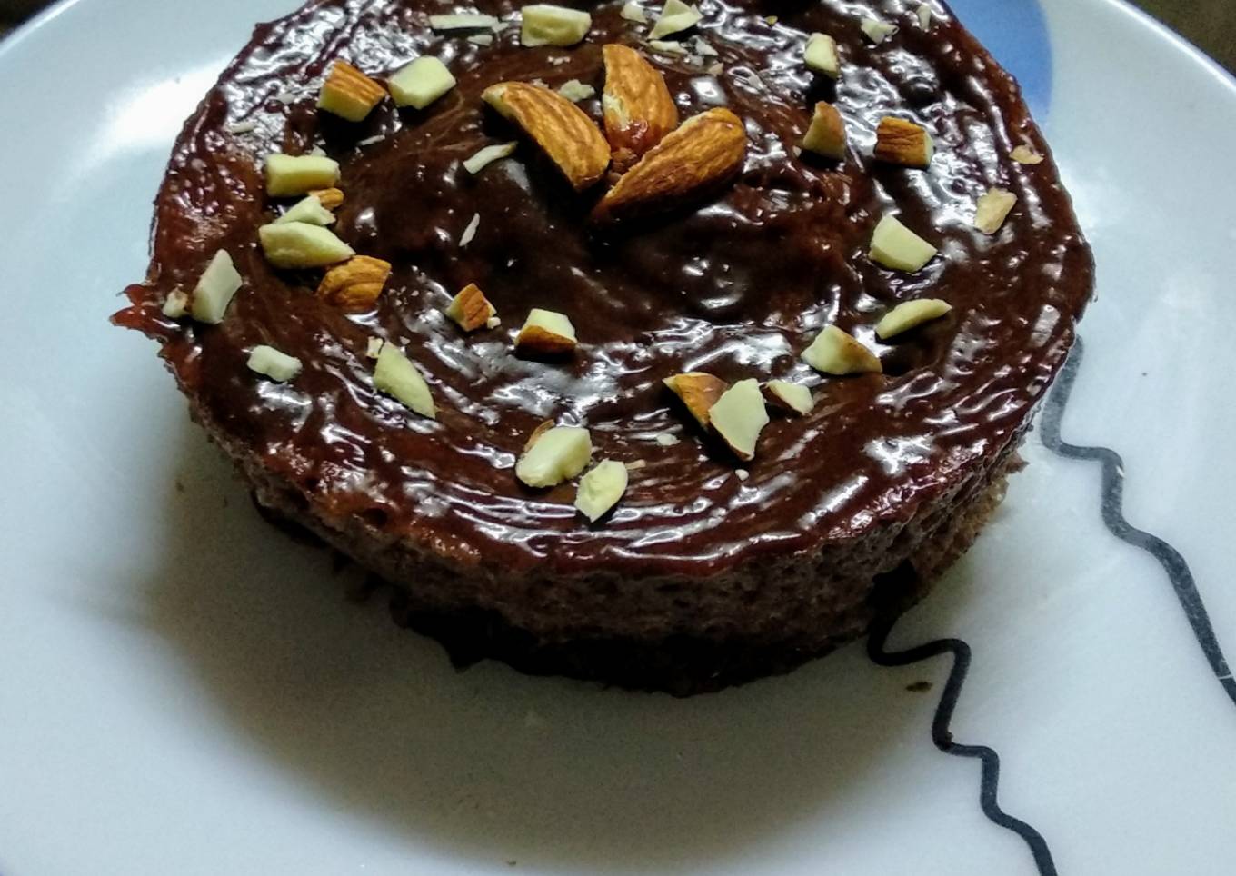- After baking, take the cake out and let it to cool down. Pour the choco Besan sauce on it, add some chopped nuts(optional) and serve it.