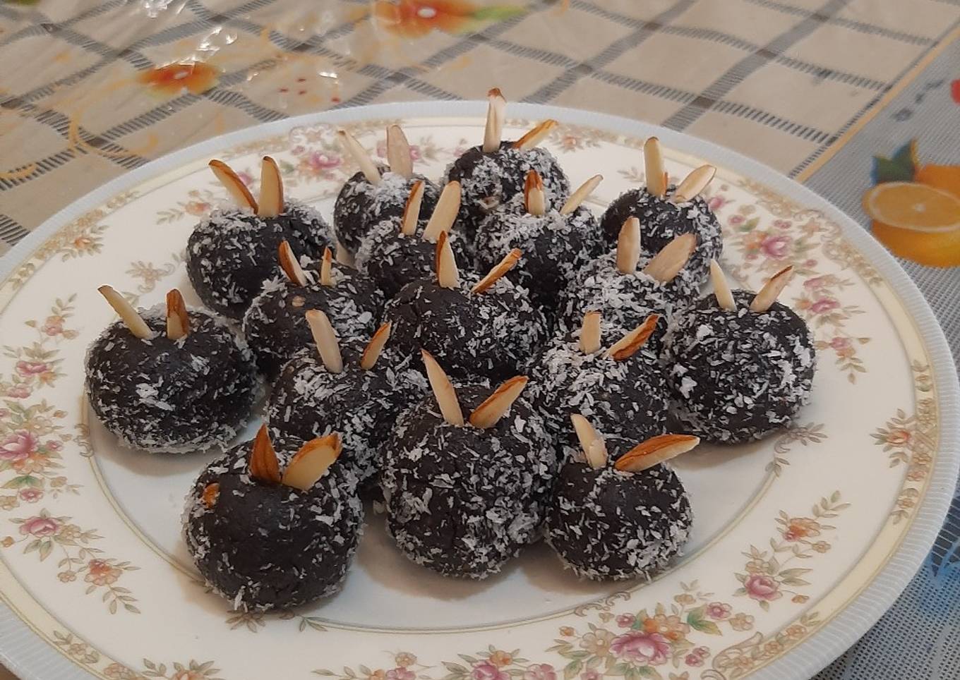 - Then make small small balls from the dough and then roll it in dry coconut powder.