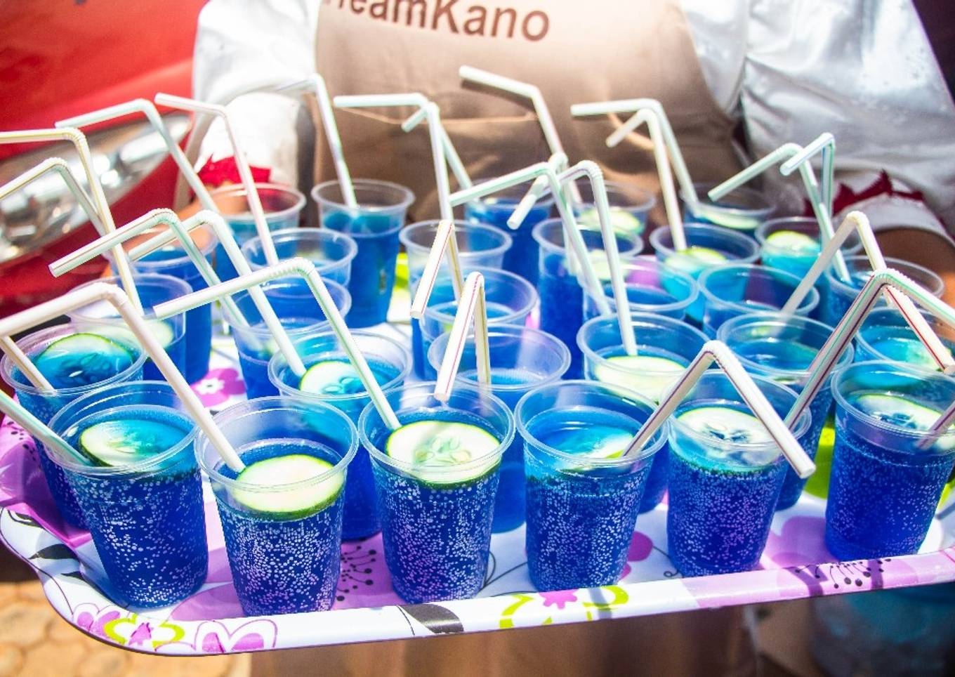 - In a dispenser, add crushed ice, sugar syrup, blue food color and lemon juice, stir well, add sprite from the side to trap the bubbles, serve chilled with lemon and cucumber slices