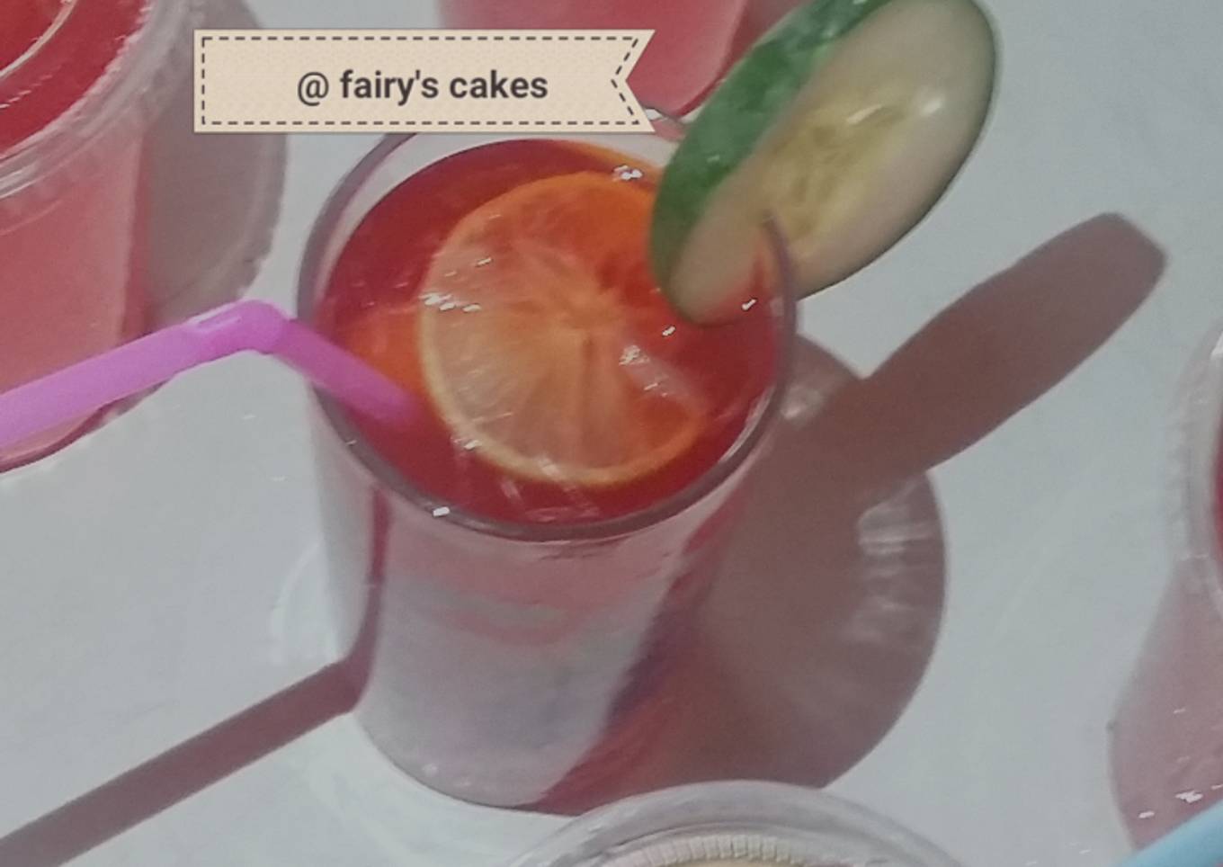 - Then gradually pour in some drops of the grenadine syrup until it turns red in colour.