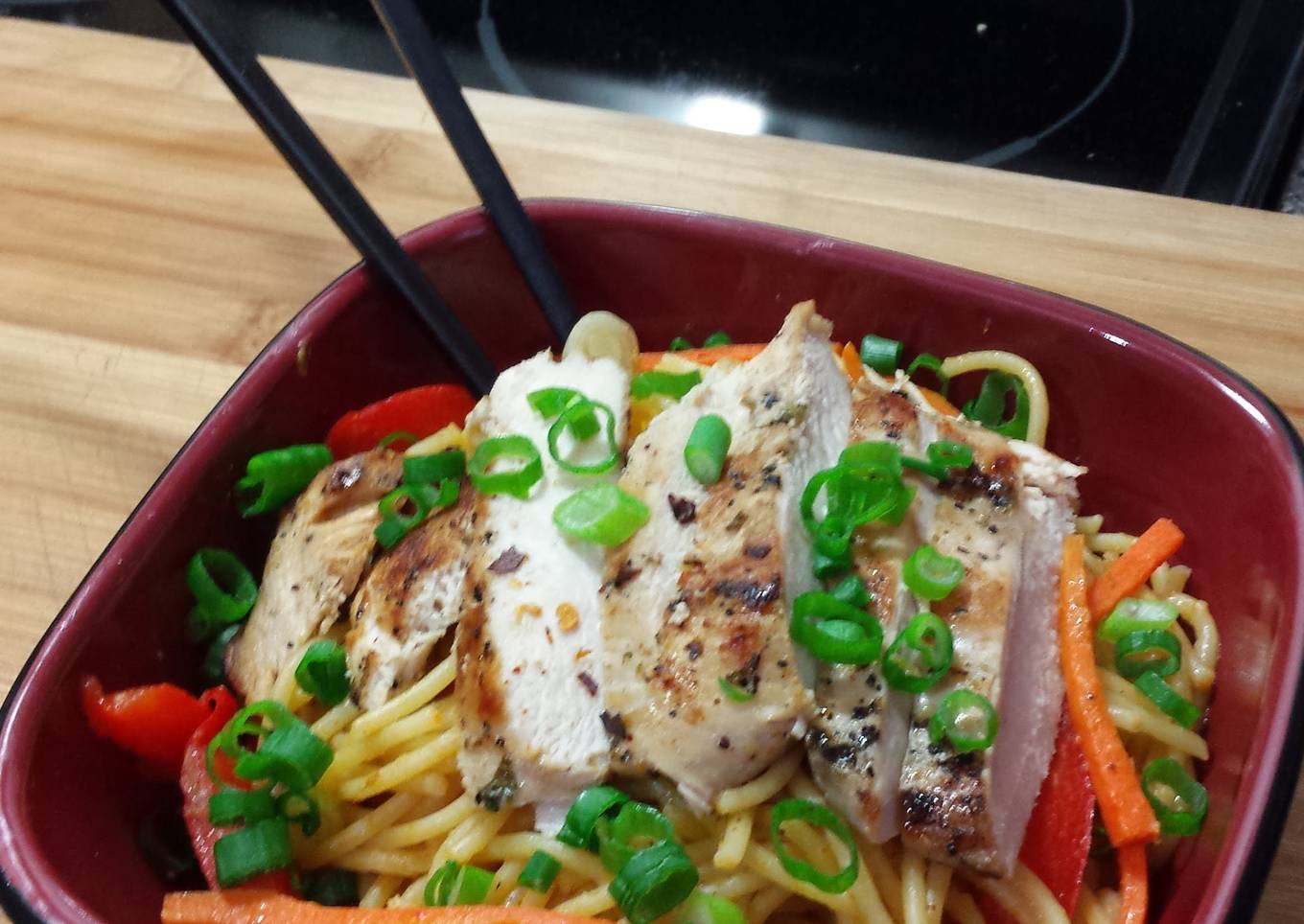 - Slice up your chicken and serve on top of spaghetti 😆😊