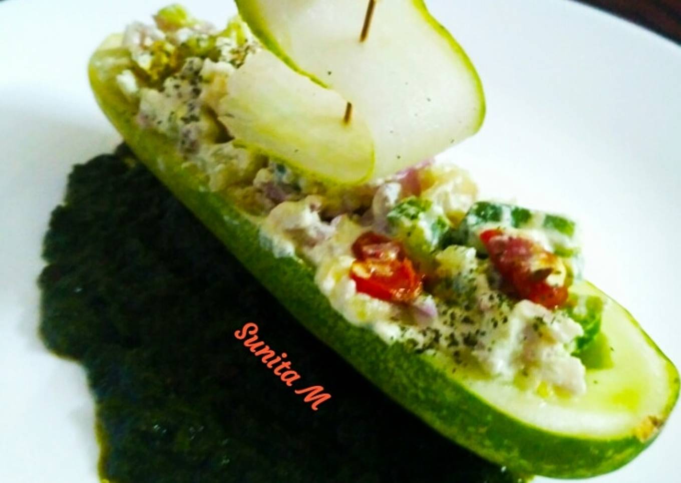 To begin with this particular recipe, we have to prepare a few ingredients. You can have Stuffed Cucumber Boat using 8 ingredients and 5 steps. Here is how you cook that.