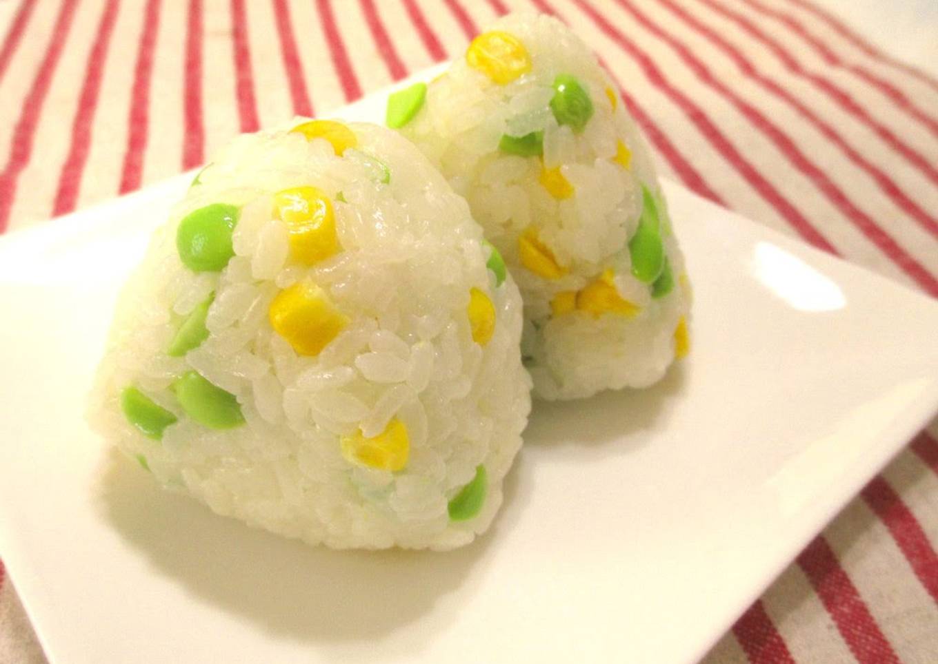 As for the number of servings that can be served to make Two Kinds of Onigiri Rice Balls with Corn and Edamame Beans is 2 servings. So make sure this portion is enough to serve for yourself and your beloved family.