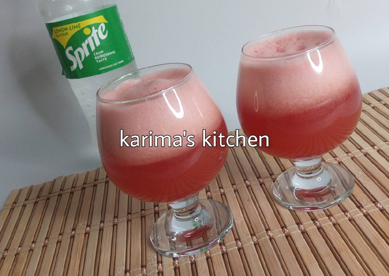 - Add the watermelon,sugar and lemon juice in a blender and blend until smooth. Pour in glasses (halfway). Top with Sprite or any soda drink