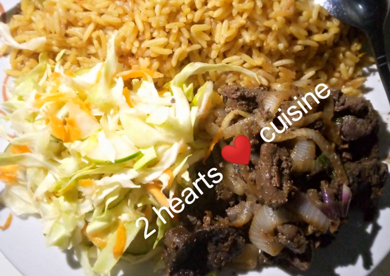 Hello everybody, it's John, welcome to our recipe page. Today, I'm gonna show you how to prepare a distinctive dish, Fried rice with grilled liver and cabbage salad. One of my favorites. For mine, I will make it a bit unique. This will be really delicious.